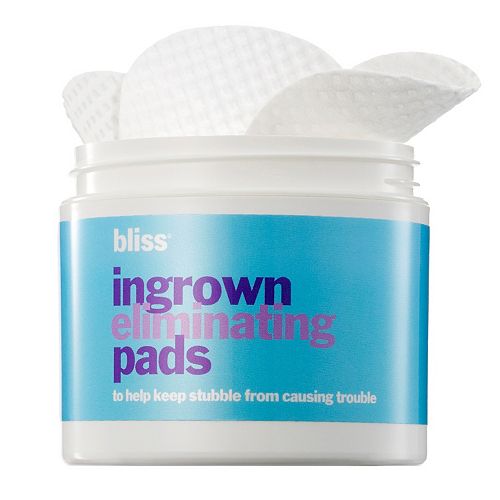 Alpha hydroxy acid that exfoliates dead skin cells from skin's surface; Bliss ingrown eliminating pads are soaked in exfoliating alpha hydroxy and beta hydroxyl acid, along with botanical soothers to help prevent post waxing or post shaving ingrown hairs. One reviewer loved that the formula didn't burn her skin upon application, making it ideal for sensitive skin. They help treat and prevent the ingrown hairs and razor bumps that can result. I typically get ingrown hairs on my chin which literally come as they please.